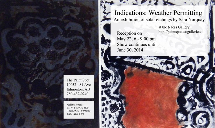 Indications: Weather Permitting Naess Gallery, Edmonton, AB. May 22 to June 30, 2014