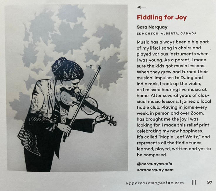 Fiddling For Joy Uppercase Magazine, issue 56. Jan to March, 2023