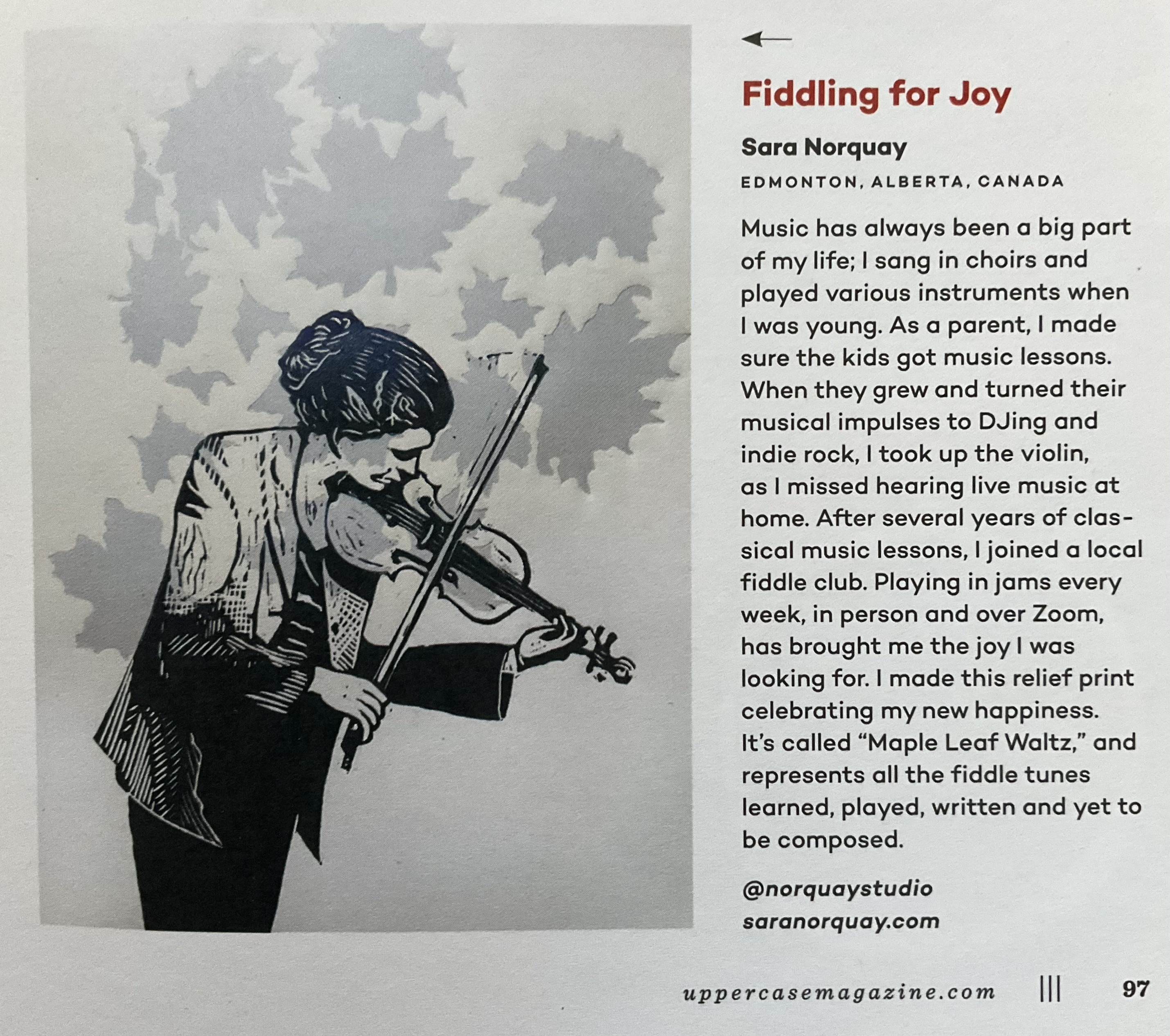 Fiddling For Joy Uppercase Magazine, issue 56. Jan to March, 2023